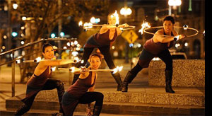 Mandala is a vibrant awe inspiring hoop troupe that offers joyfully exciting and dynamic hoop performances. Mandala combines a love of dance and circus arts in their hooping style. We specialize in captivating entertainment for a variety of events including concerts, festivals, night clubs, private, corporate and birthday parties, and much more. Mandala can adapt their act, music and costume to suit your event’s needs. We love the creative process and are constantly honing our skills to bring the most effervescent and outstanding performance possible.